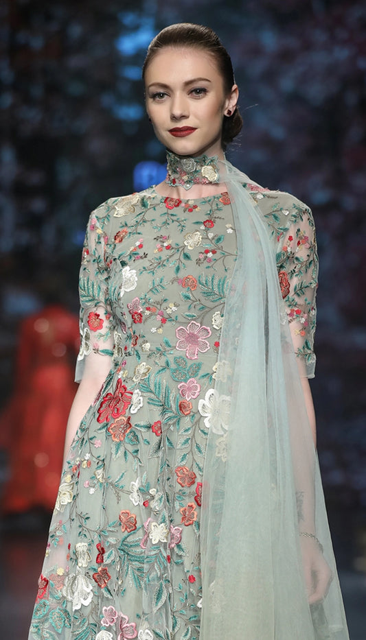 Olive Tulle Saree