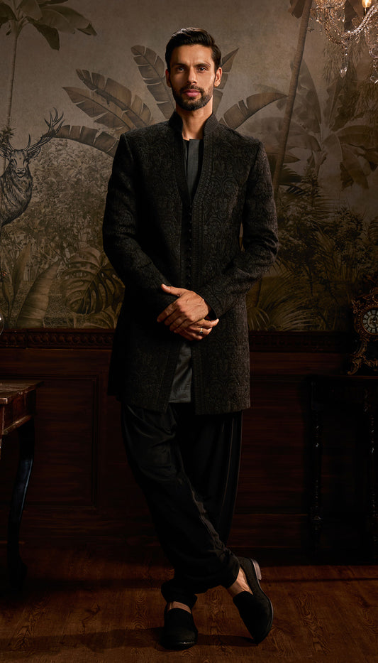 Linen Jacket with Sequin Tulle Kurta & Matka Trousers