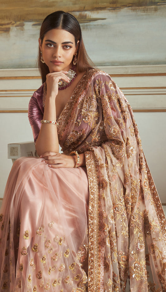 Shyamal & Bhumika selected luxurious fabrics such as raw silk, velvet, and organza for the collection. These materials add texture and opulence to every outfit. Moreover, the designers have meticulously crafted bridal lehengas and sarees, adorning them with zardosi, marodi work, and beadwork. The color palette—featuring ruby red, emerald green, blush pink, and vintage rose—reflects regal elegance. Thus, every piece feels both contemporary and timeless.