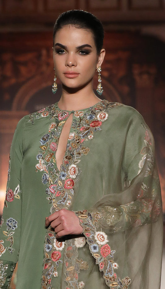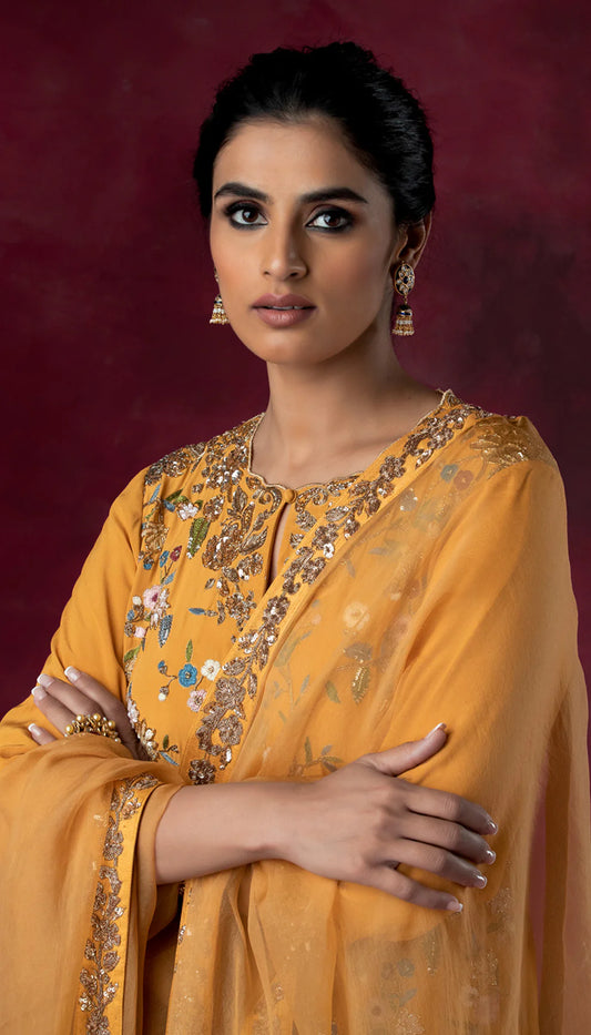 Ivory Habutai Silk Dress with Tulle Churidaar