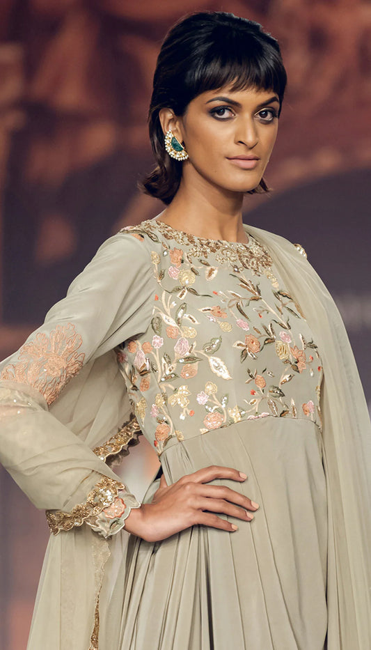 Moon Grey Long Cape Set