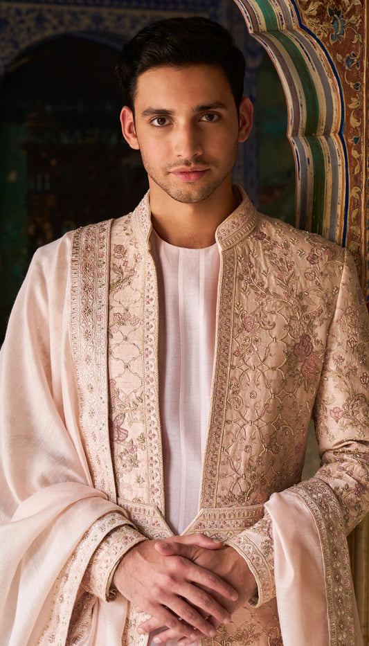 Shell pink Lotus Sherwani