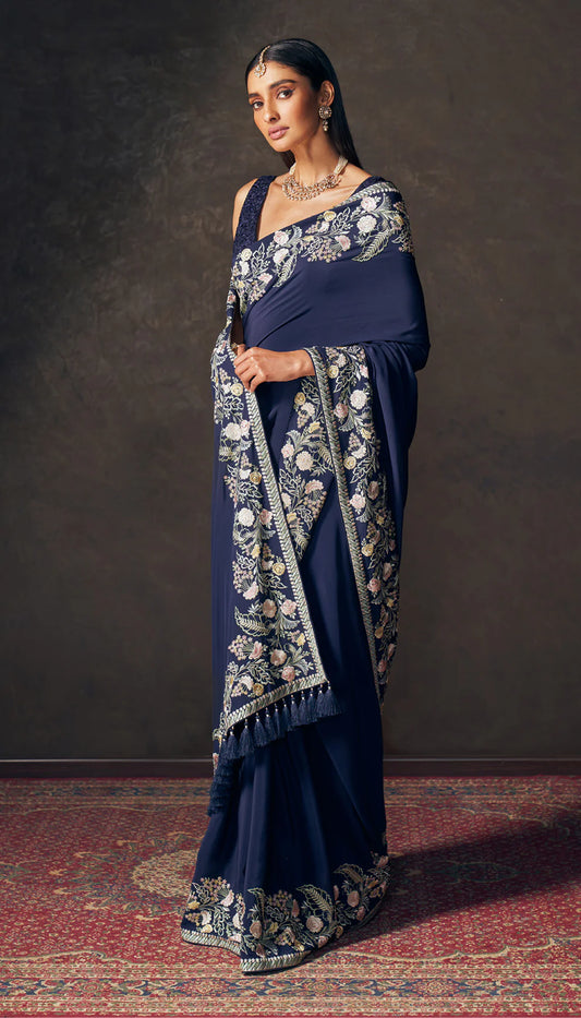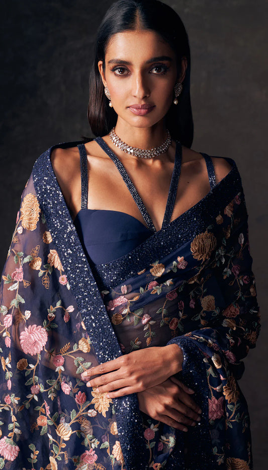 Midnight Blue Carnation Saree