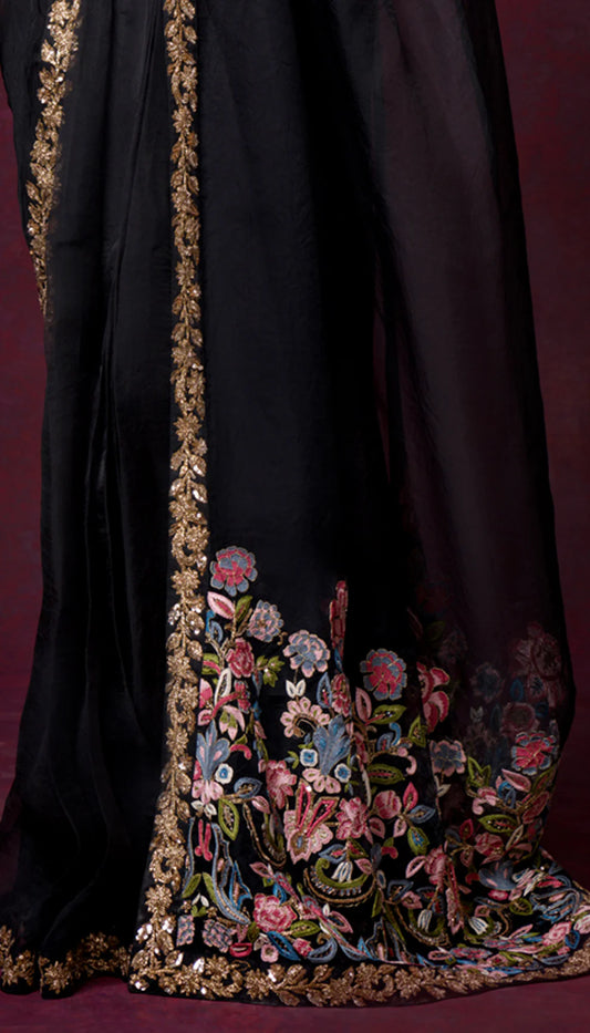 An Exquisite Blush-Pink Tulle Saree Embellished with Multicoloured Threadwork