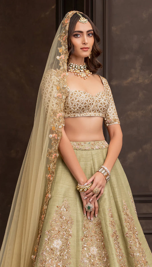 Olive Cartouche Lehenga