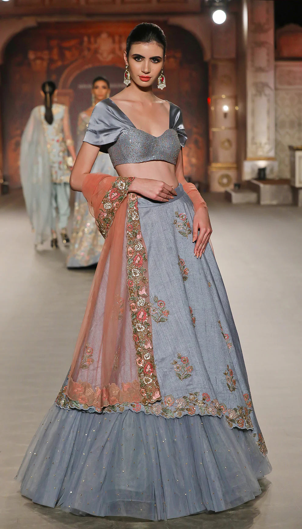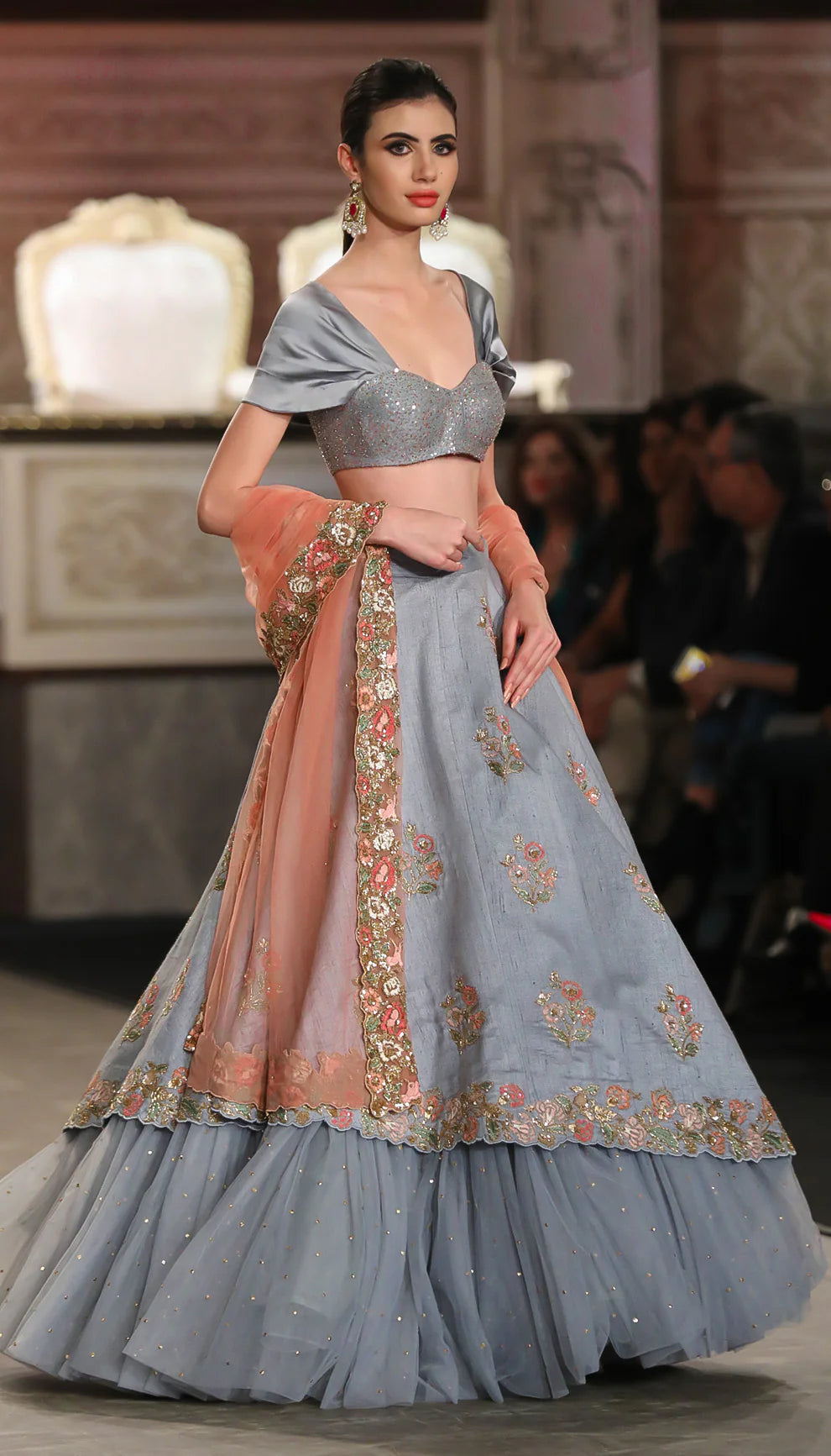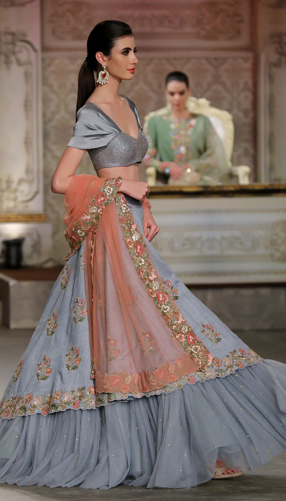 A Classic Asymetric Hem Pale Blue Raw Silk Lehenga