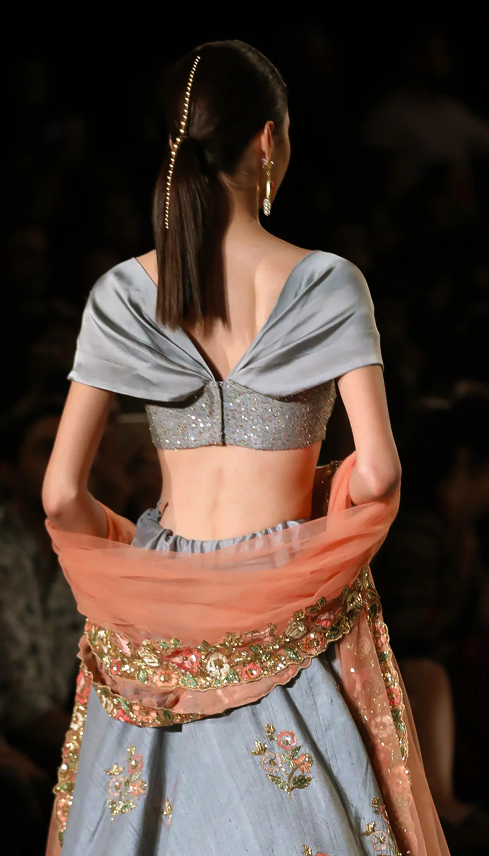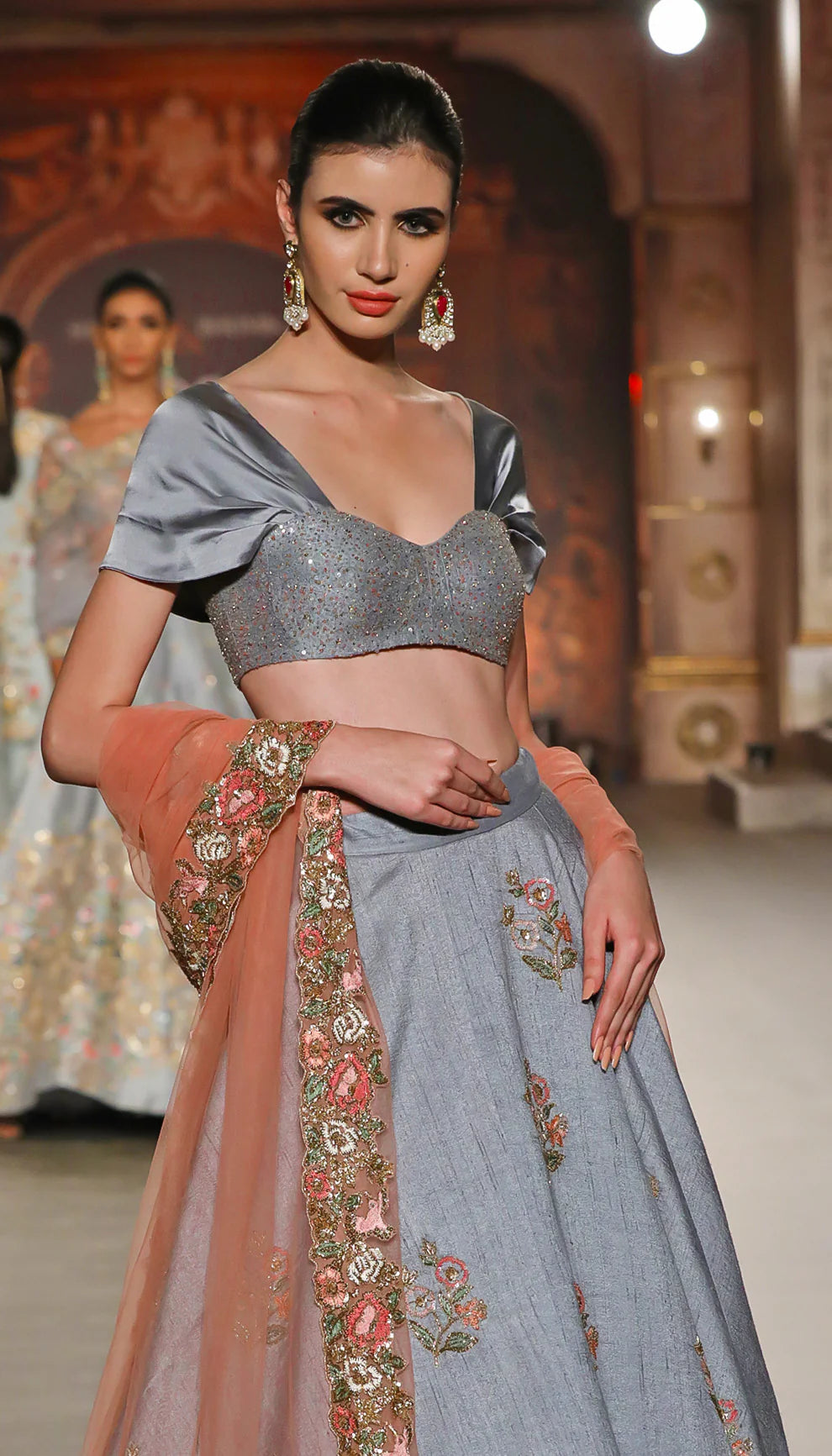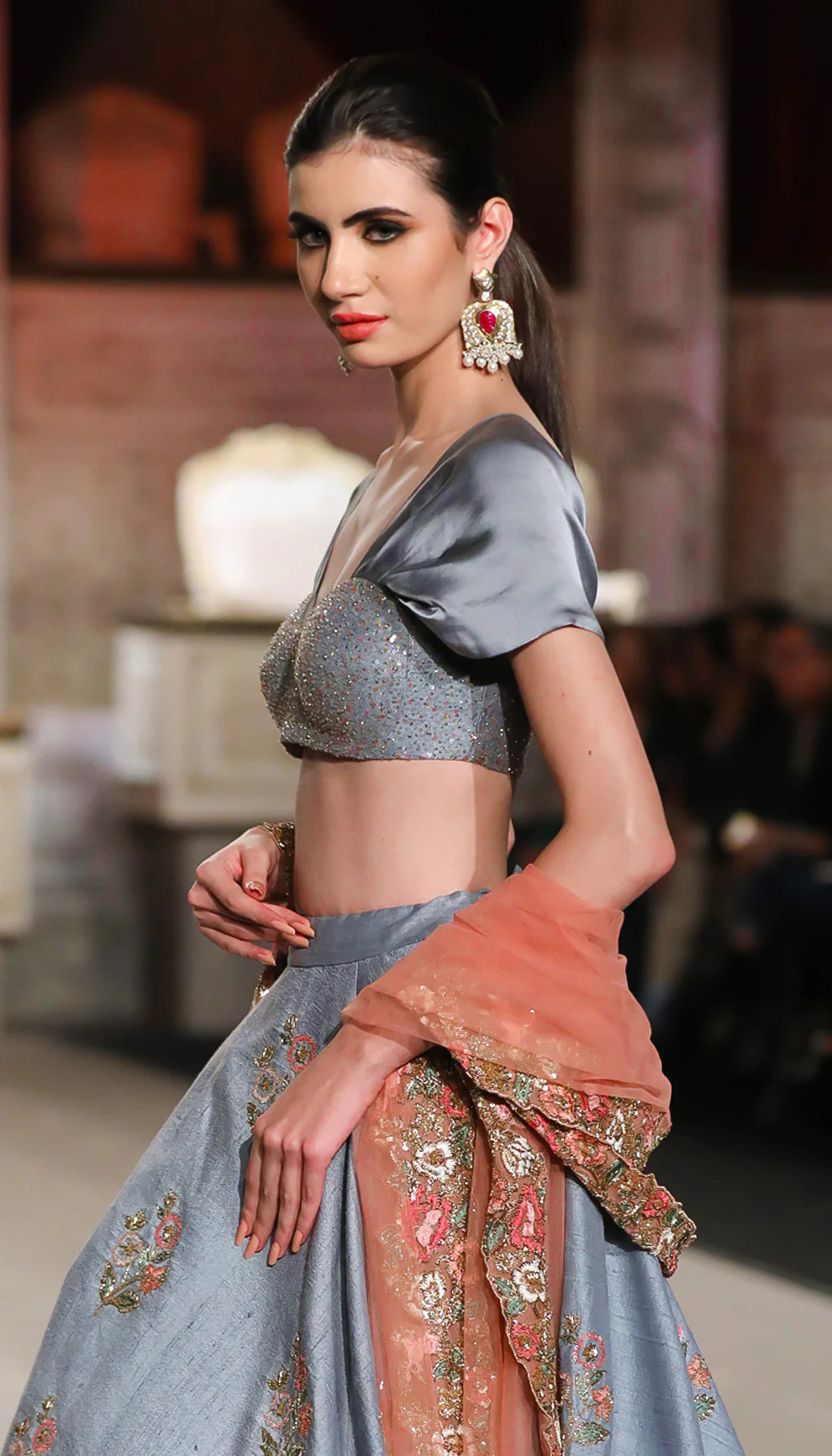 A Classic Asymetric Hem Pale Blue Raw Silk Lehenga