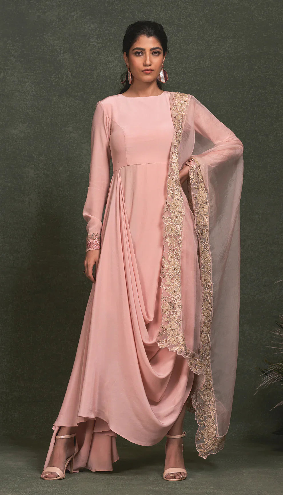 Powder Pink Crepe Silk Cowl Dress