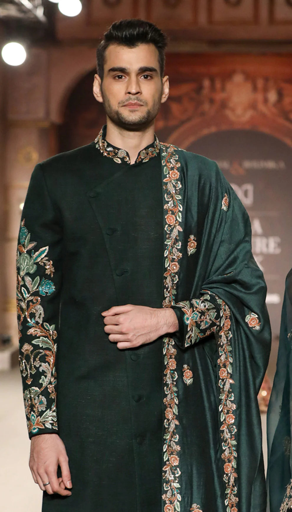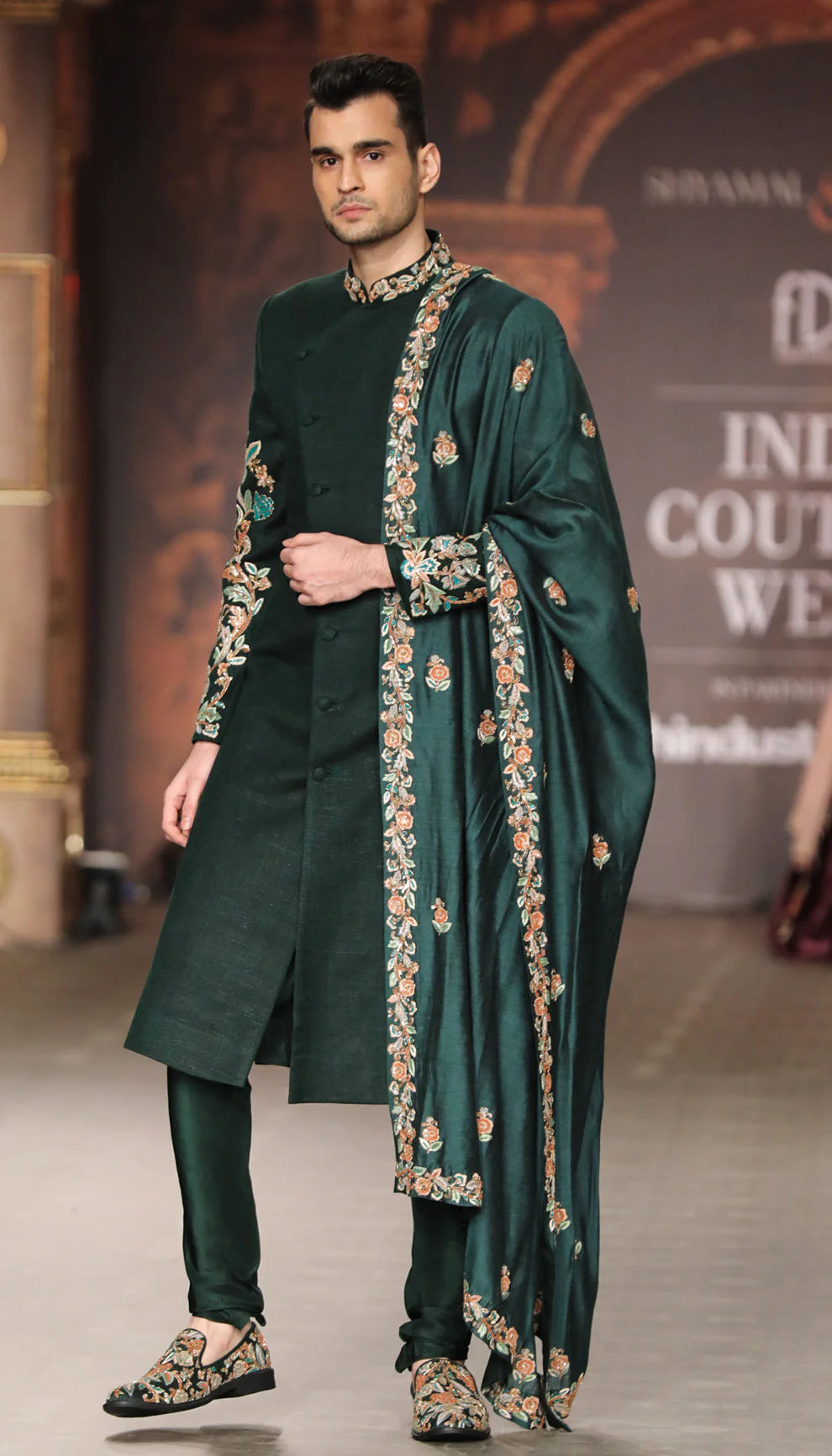 A Classic Forest Green Matka Silk Sherwani
