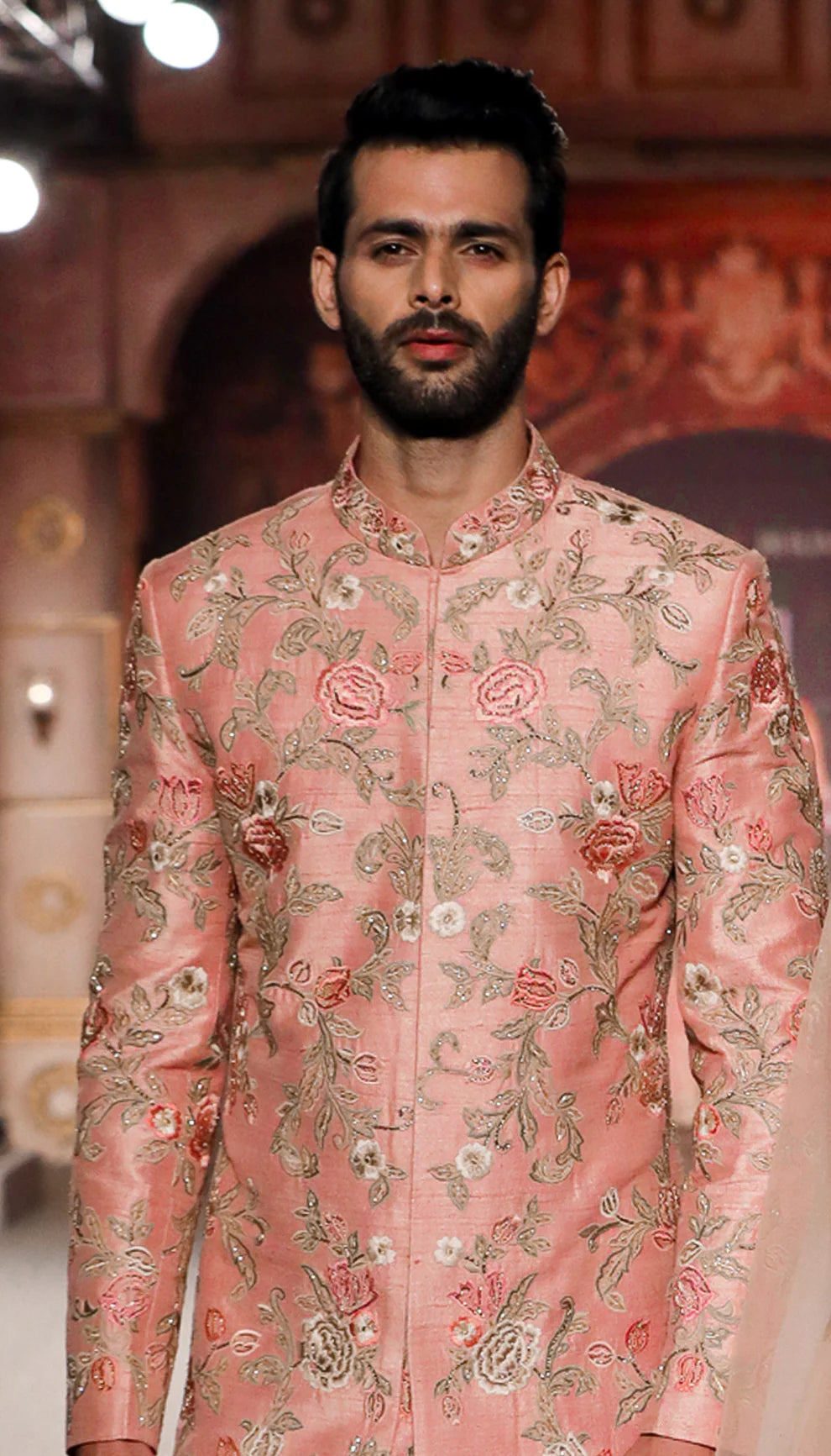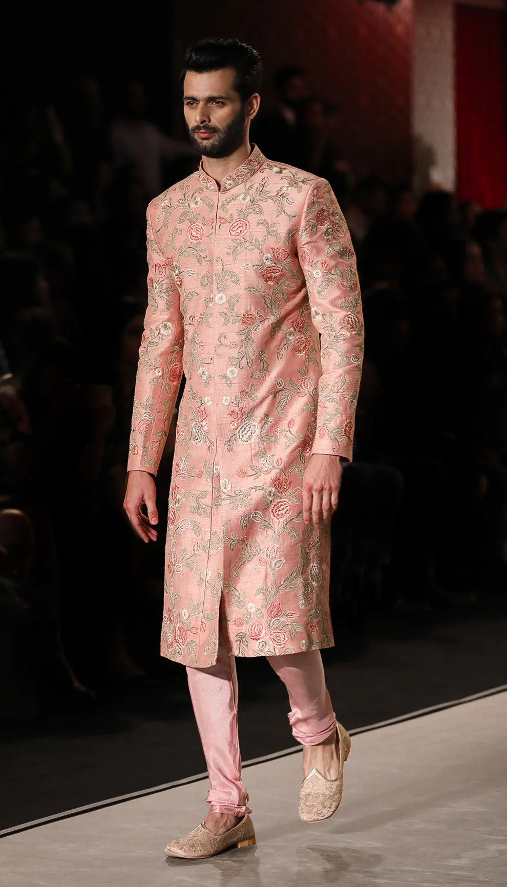 A Classic Muted Pink Raw Silk Sherwani