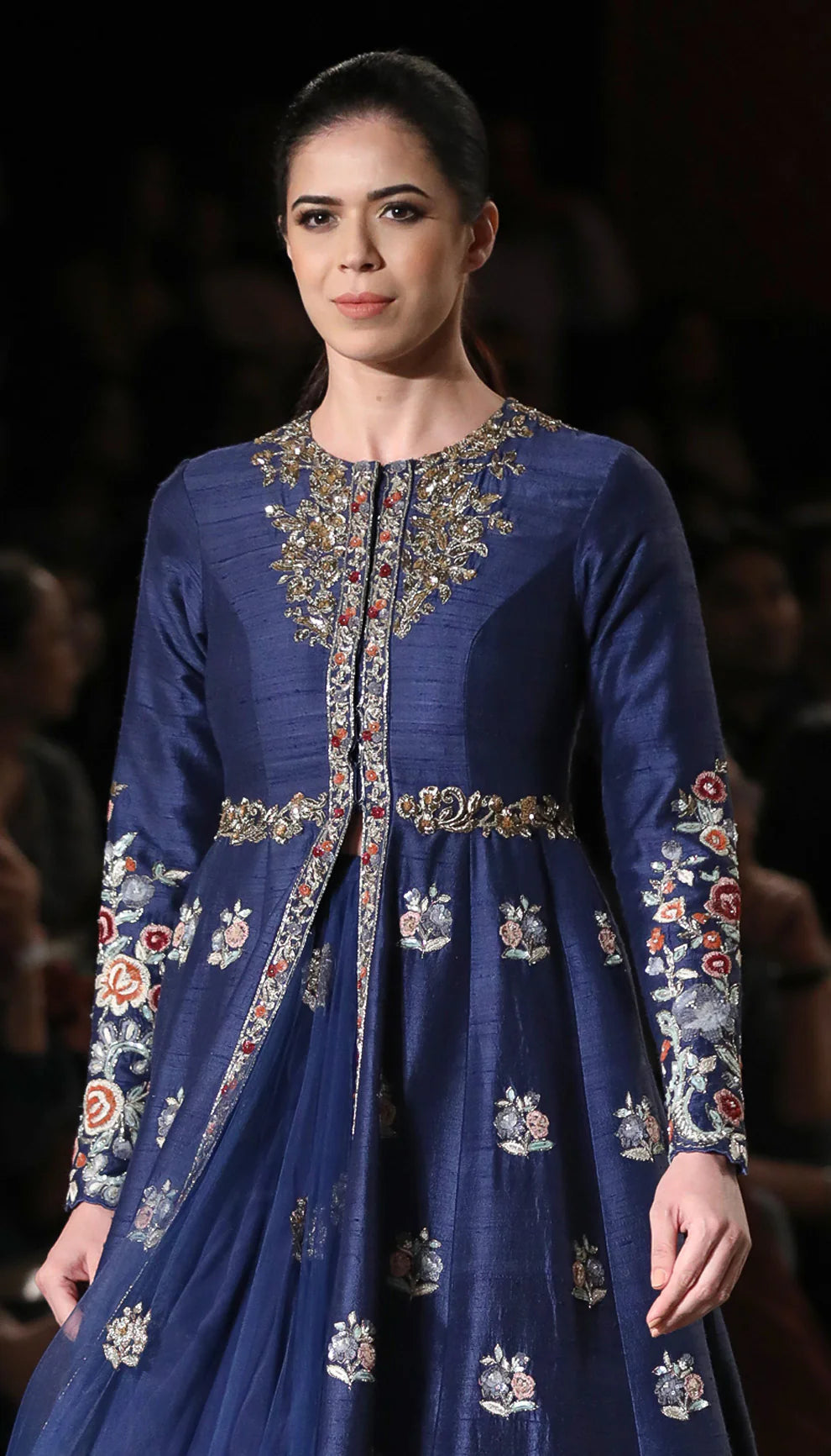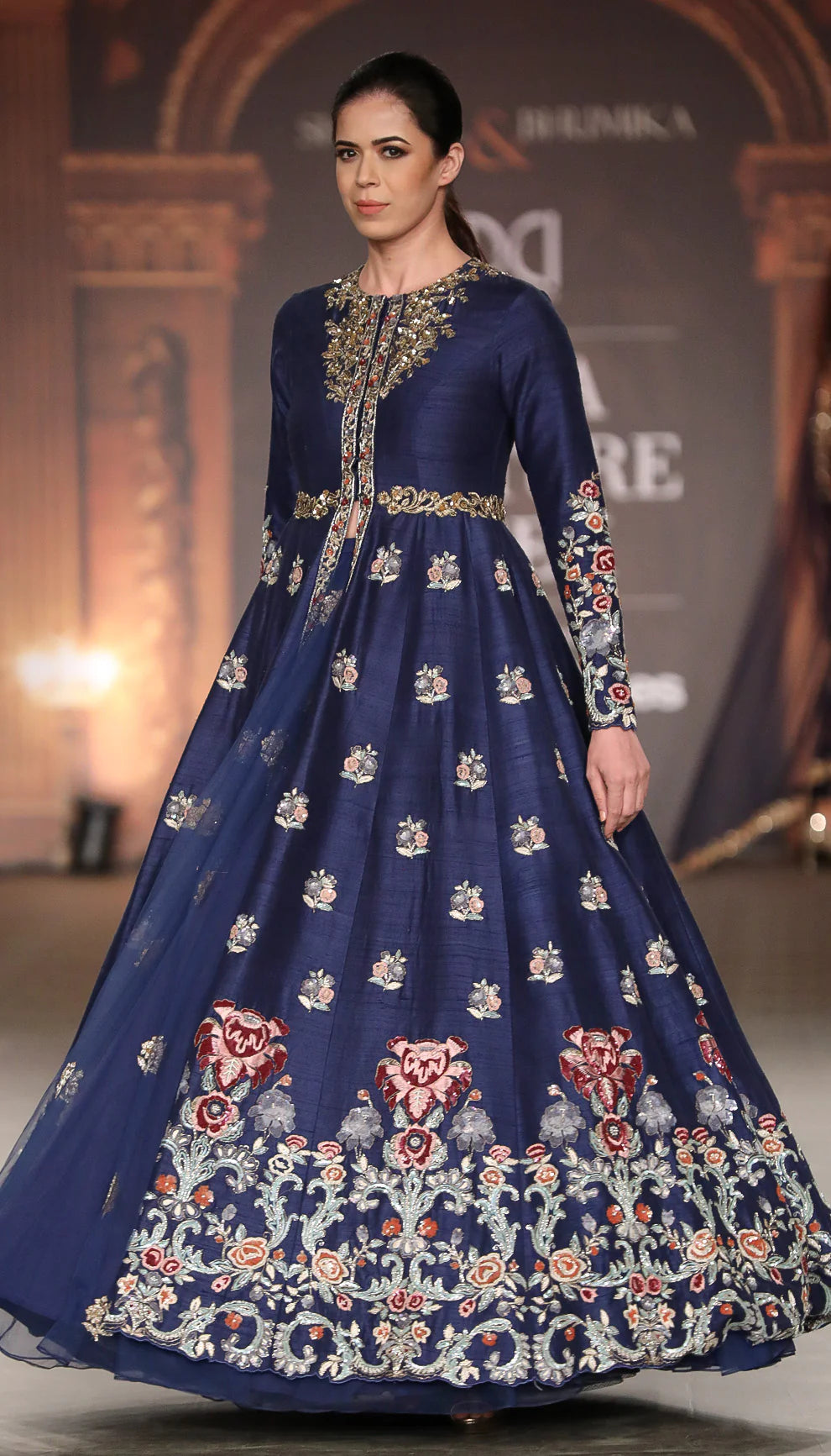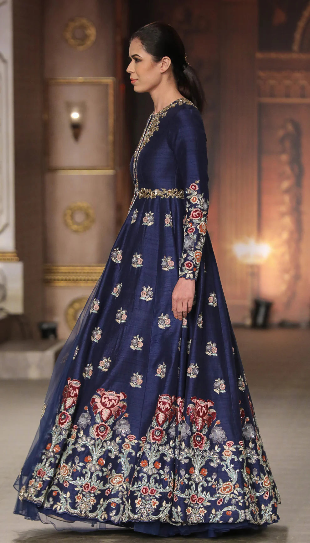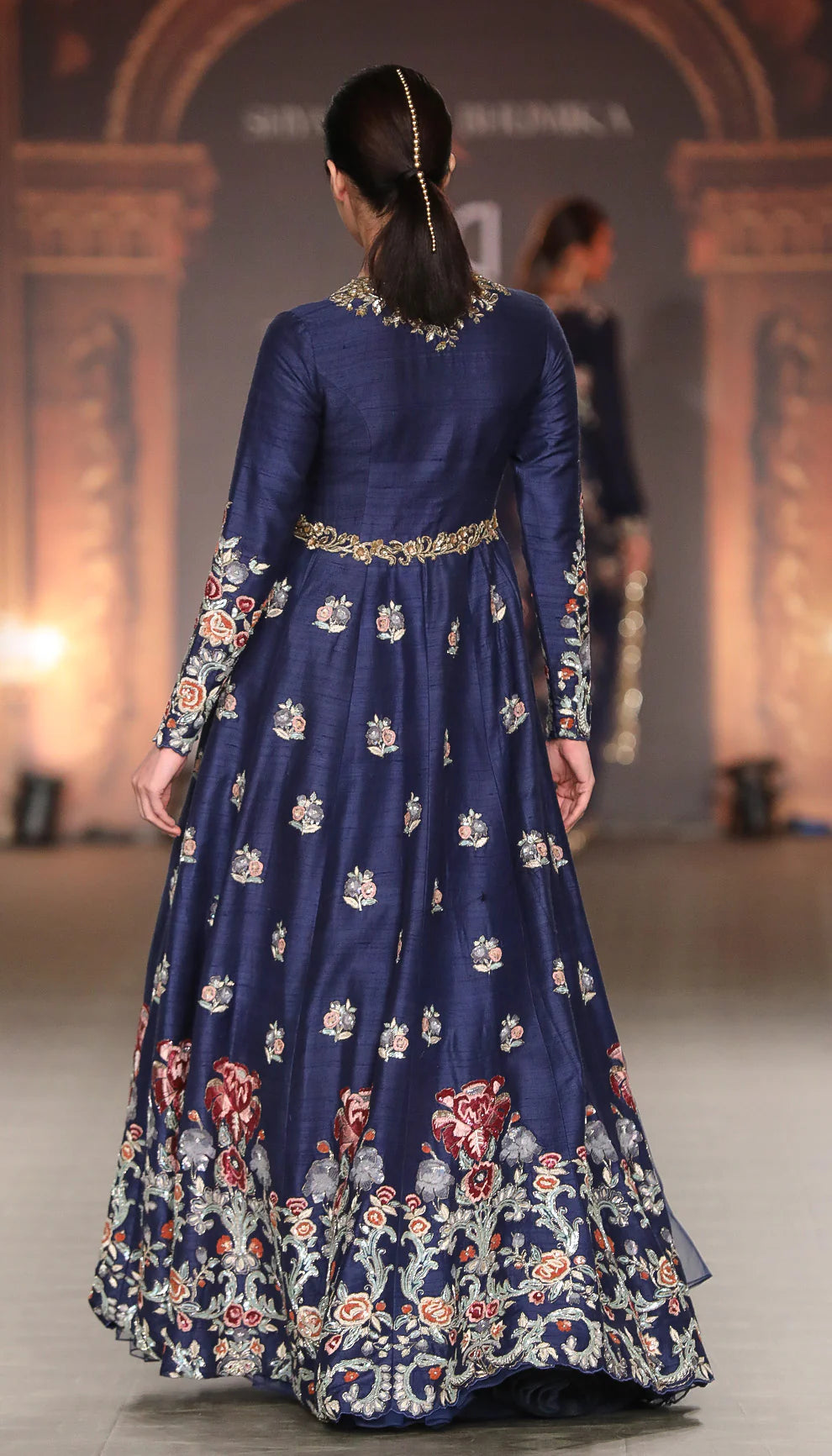 A Classic Muted Royal Blue Panelled Jacket lehenga