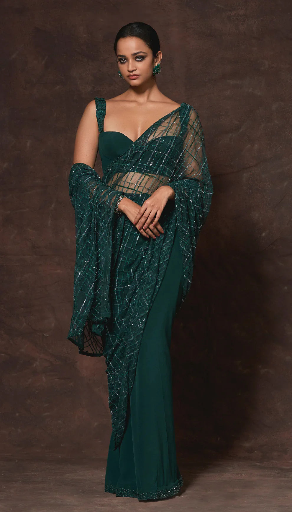 Cocktail Green Constructed Saree