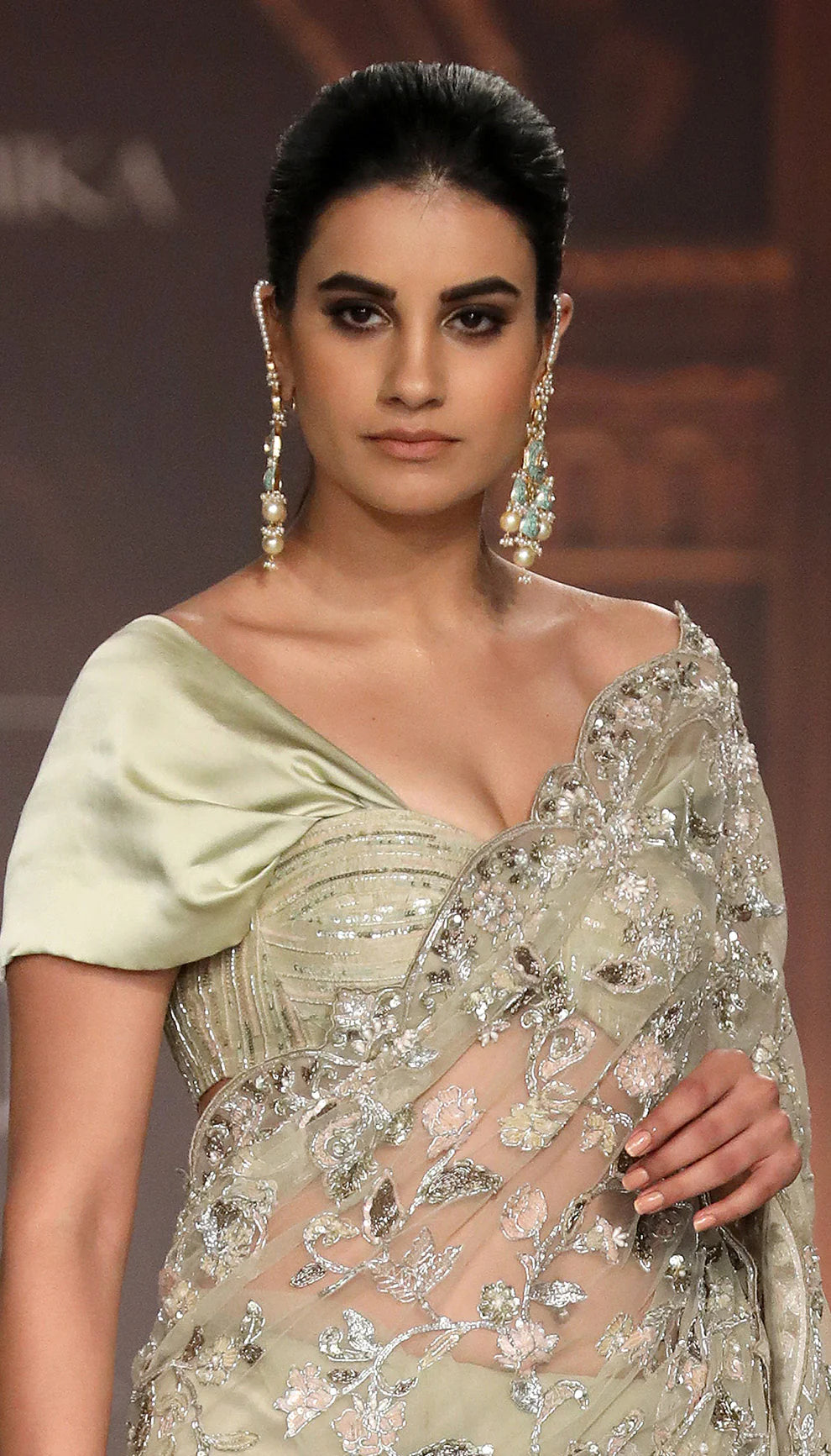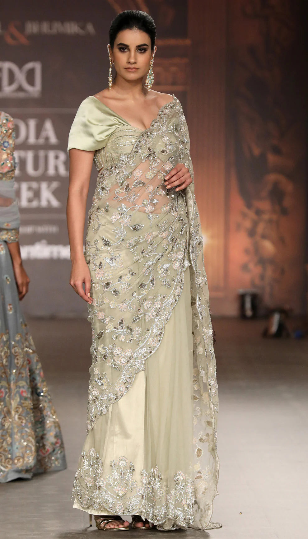 A Mint Scalloped Edge Tulle Saree