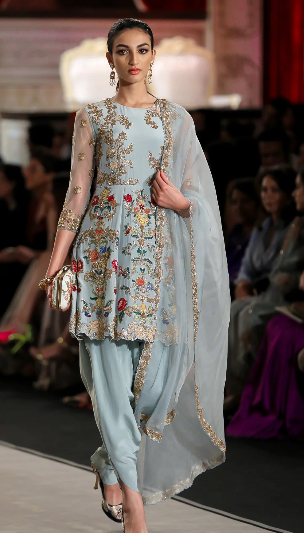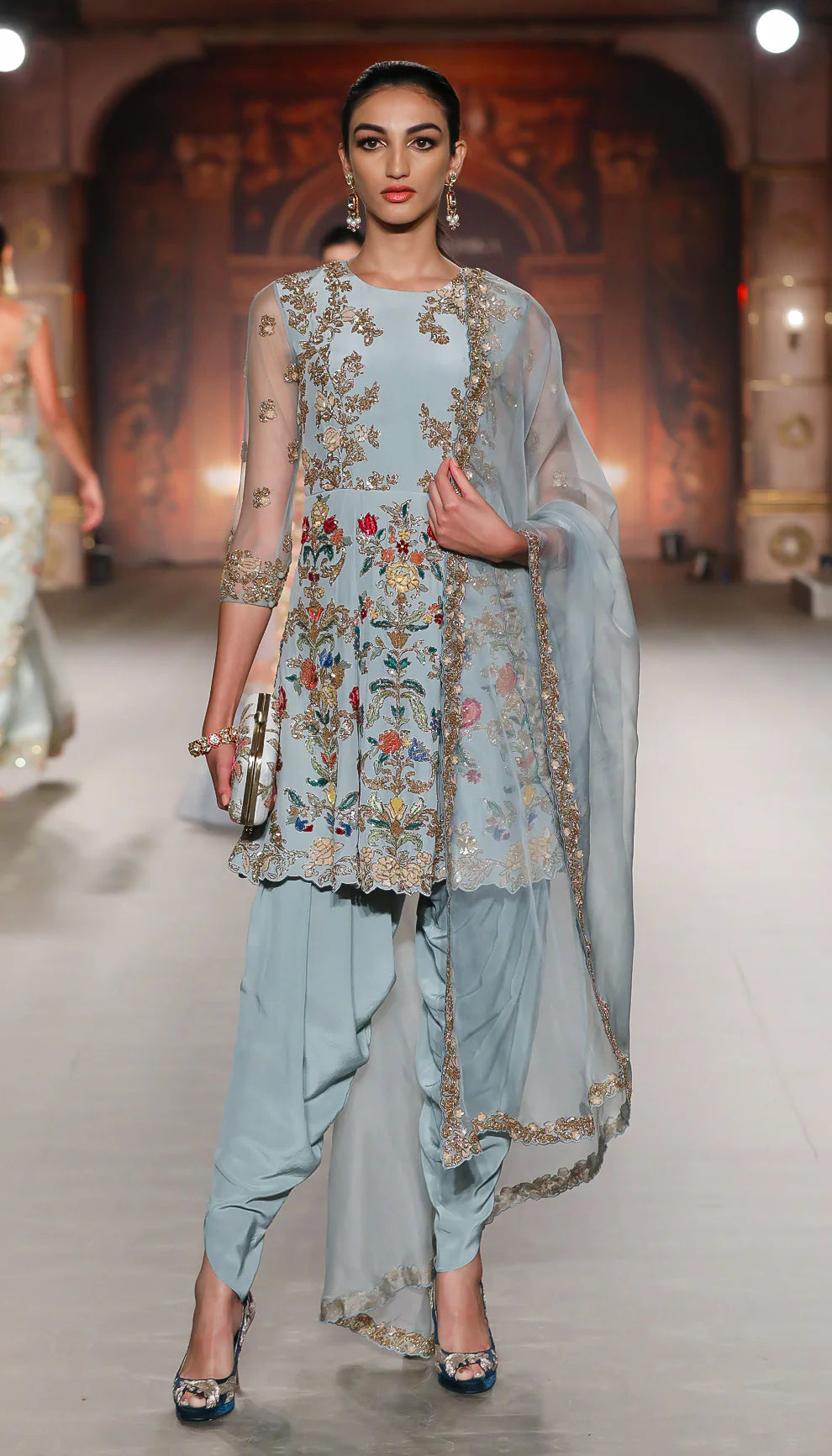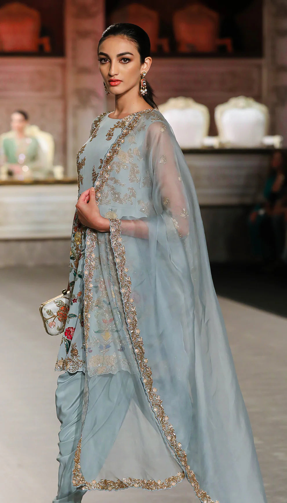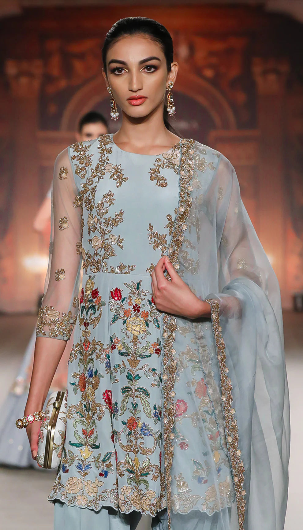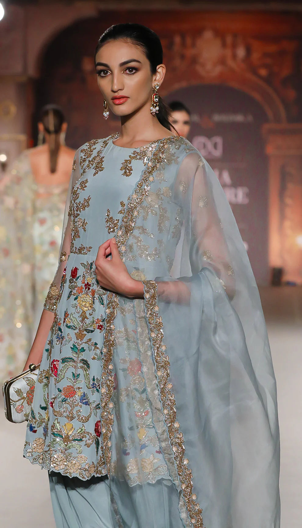 A Sylish Crop Kalidaar Kurta with Floral Bouquets