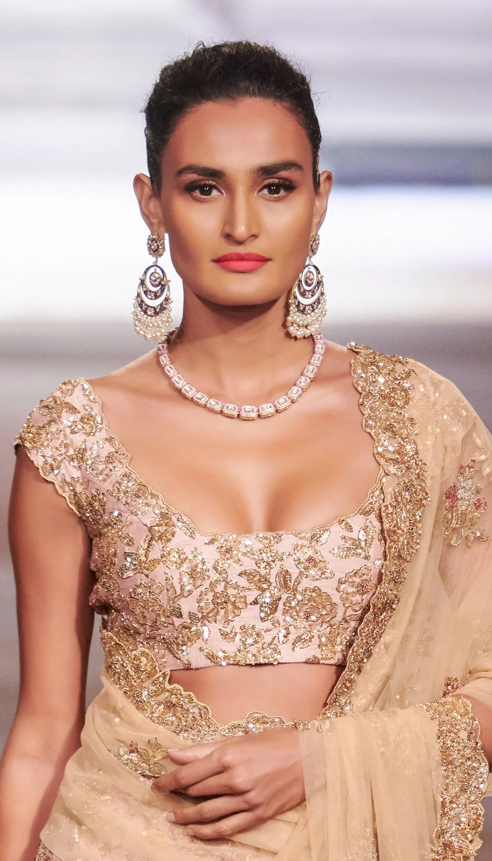 A Vintage Pink Raw Silk Lehenga with Gilded Gold and Sequins Embroidery