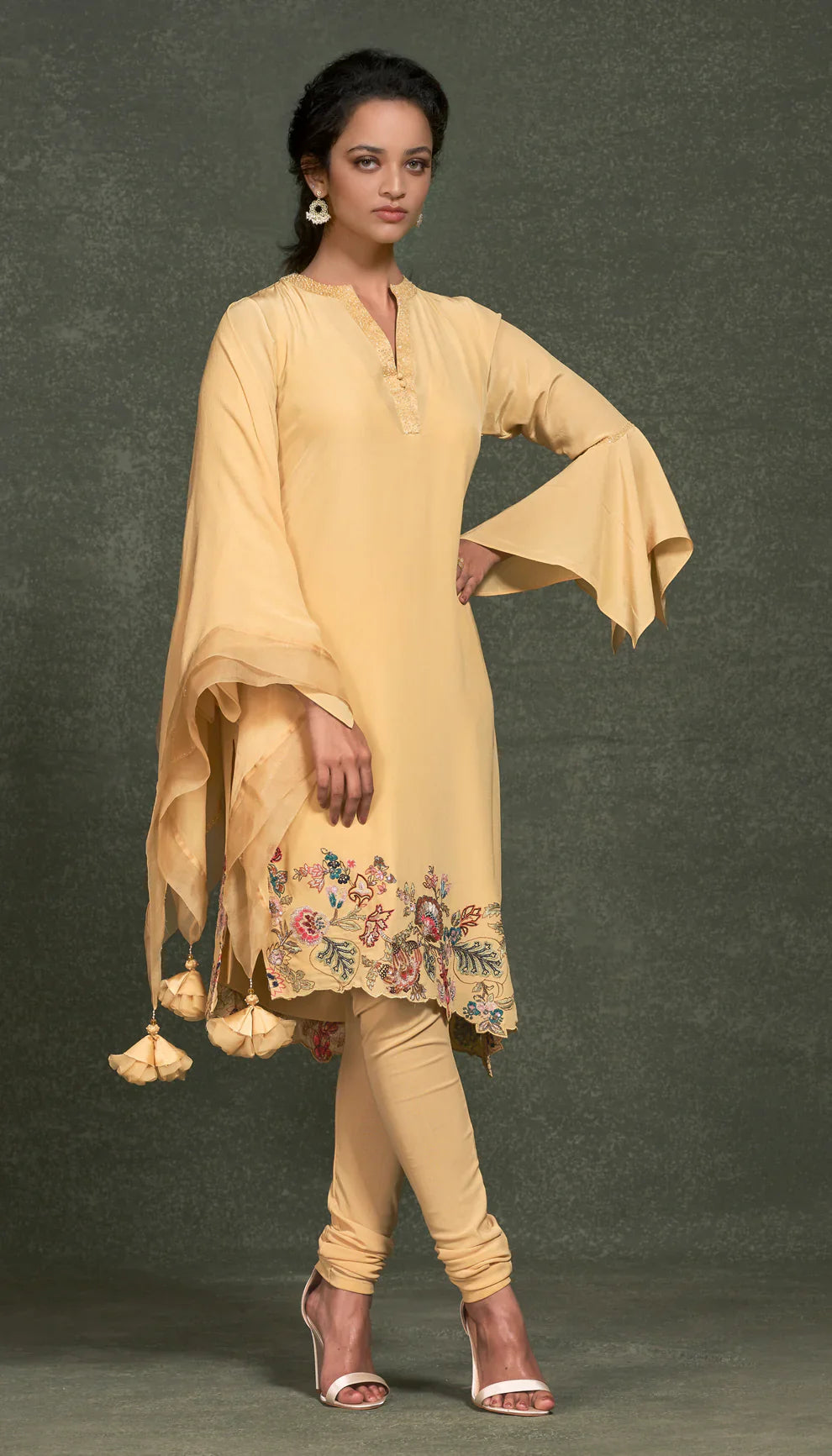 Asymmetrical Hem Crepe Silk Kurta