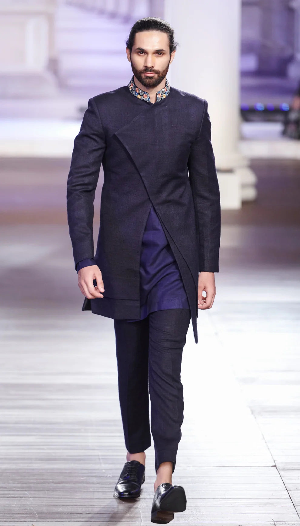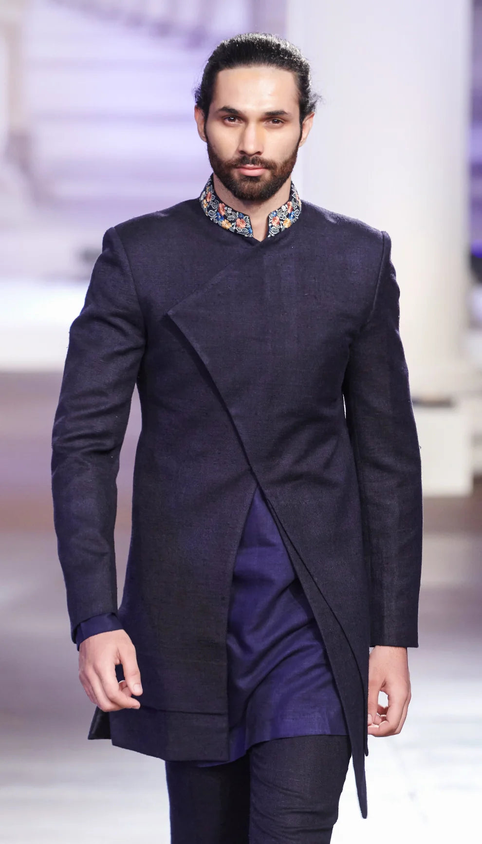 Asymmetric Jacket with Multicolor Threadwork Embroidered Collar