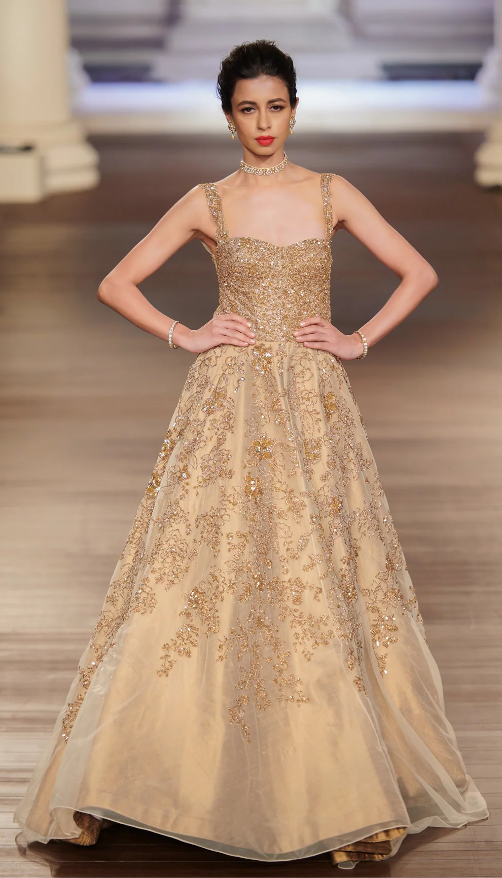Champagne Tulle Gown with Gold Foil-Like Peeta Embroidery