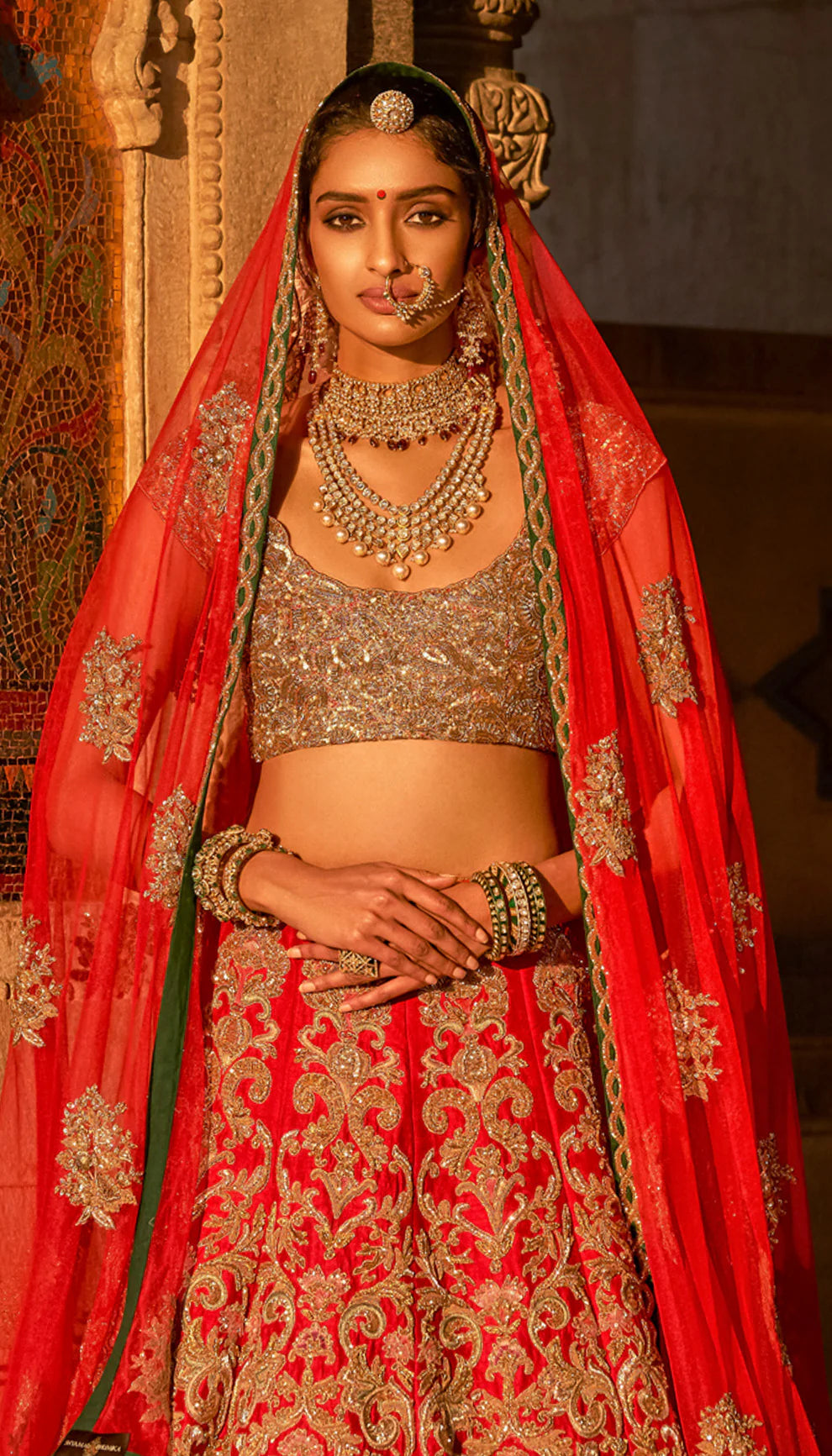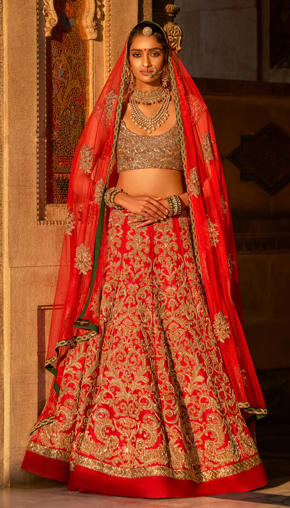 Classic Red Raw Silk Lehenga with Fine Aari, Zardosi, Zari Floss, and Tonal Resham Embroidery