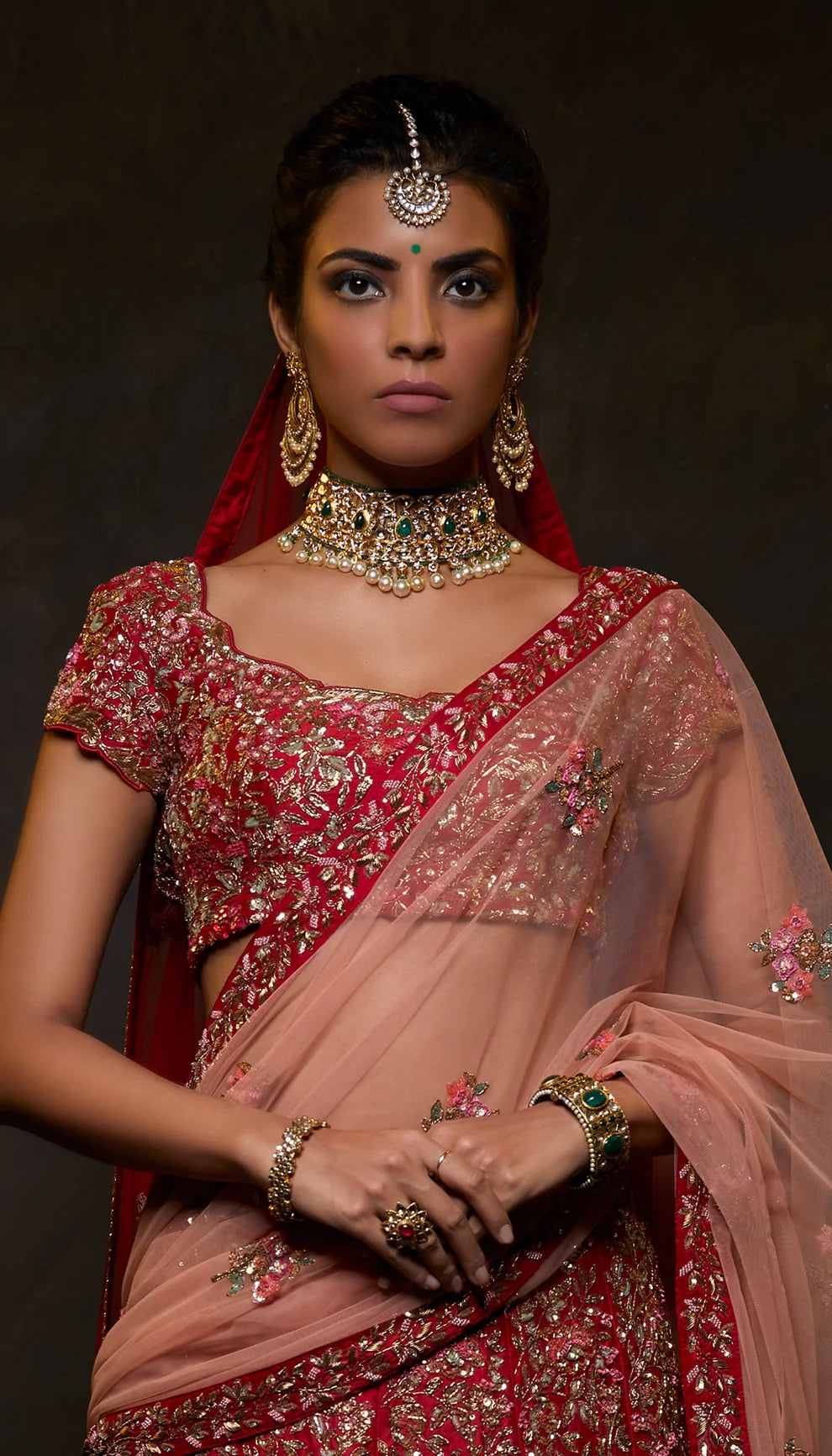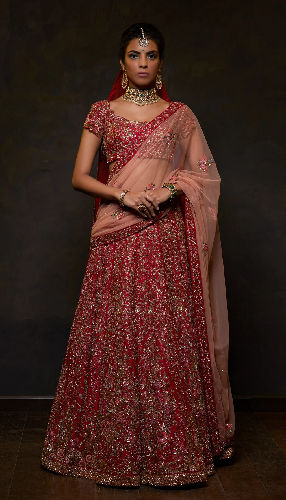 embroidery, paired with an embroidered bouse and tulle dupattas.