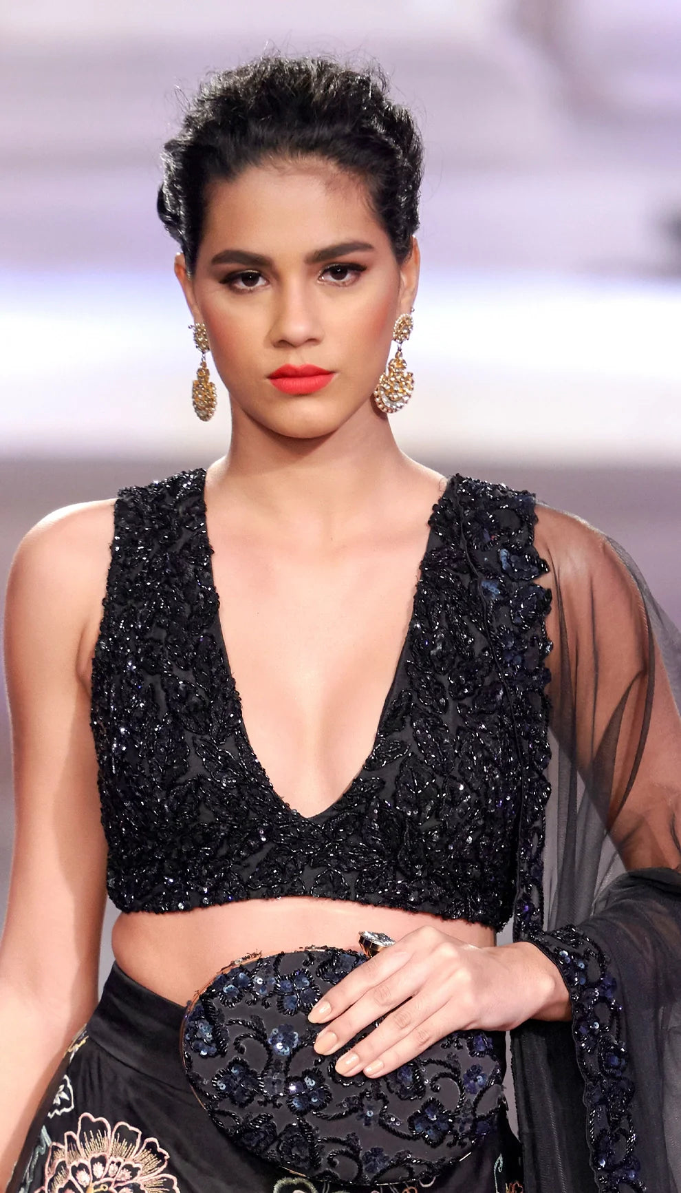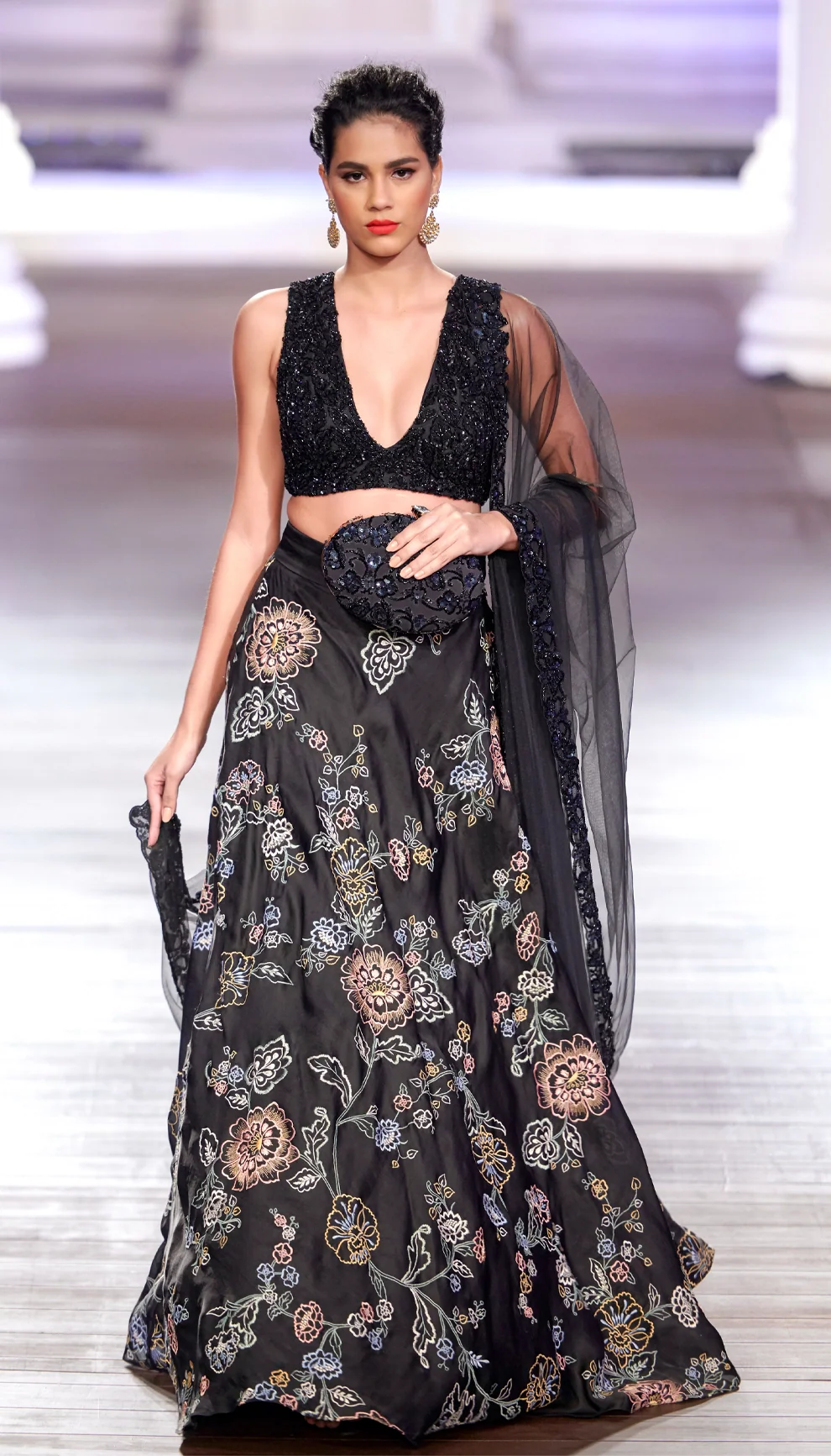 Floral Thread Jaal Organza Skirt with Shimmer Sequined Blouse