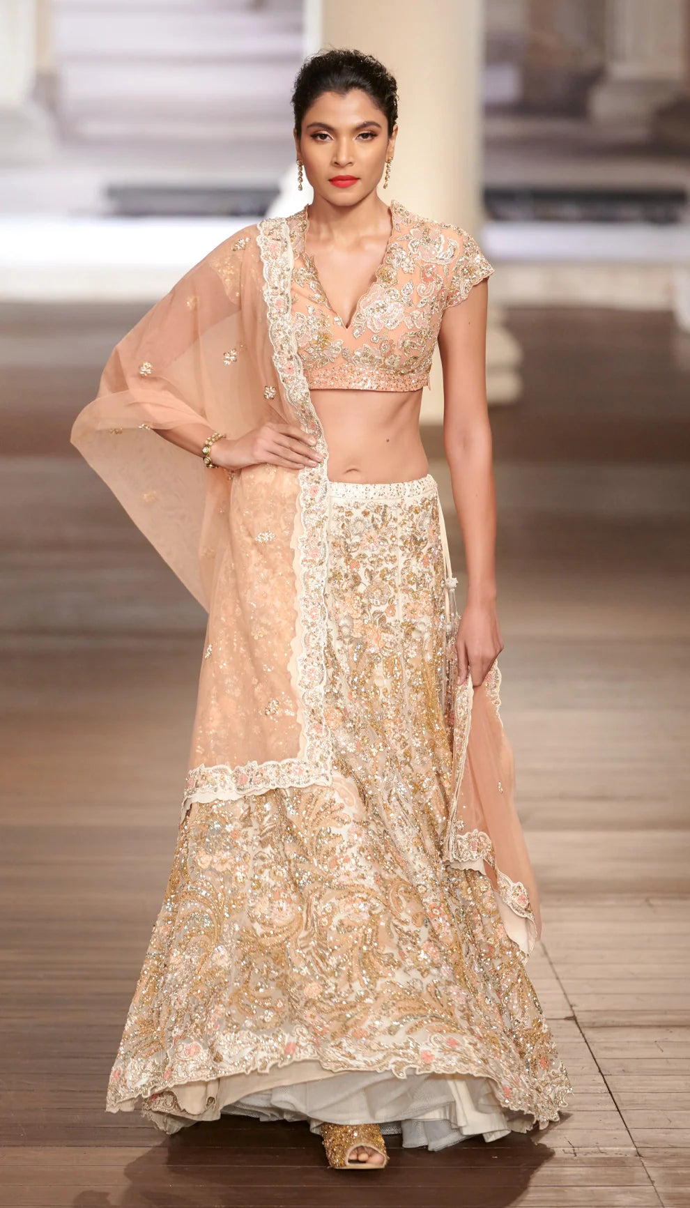 Ivory Tulle Lehenga with Swirl Motifs Inspired by Versailles Brocades