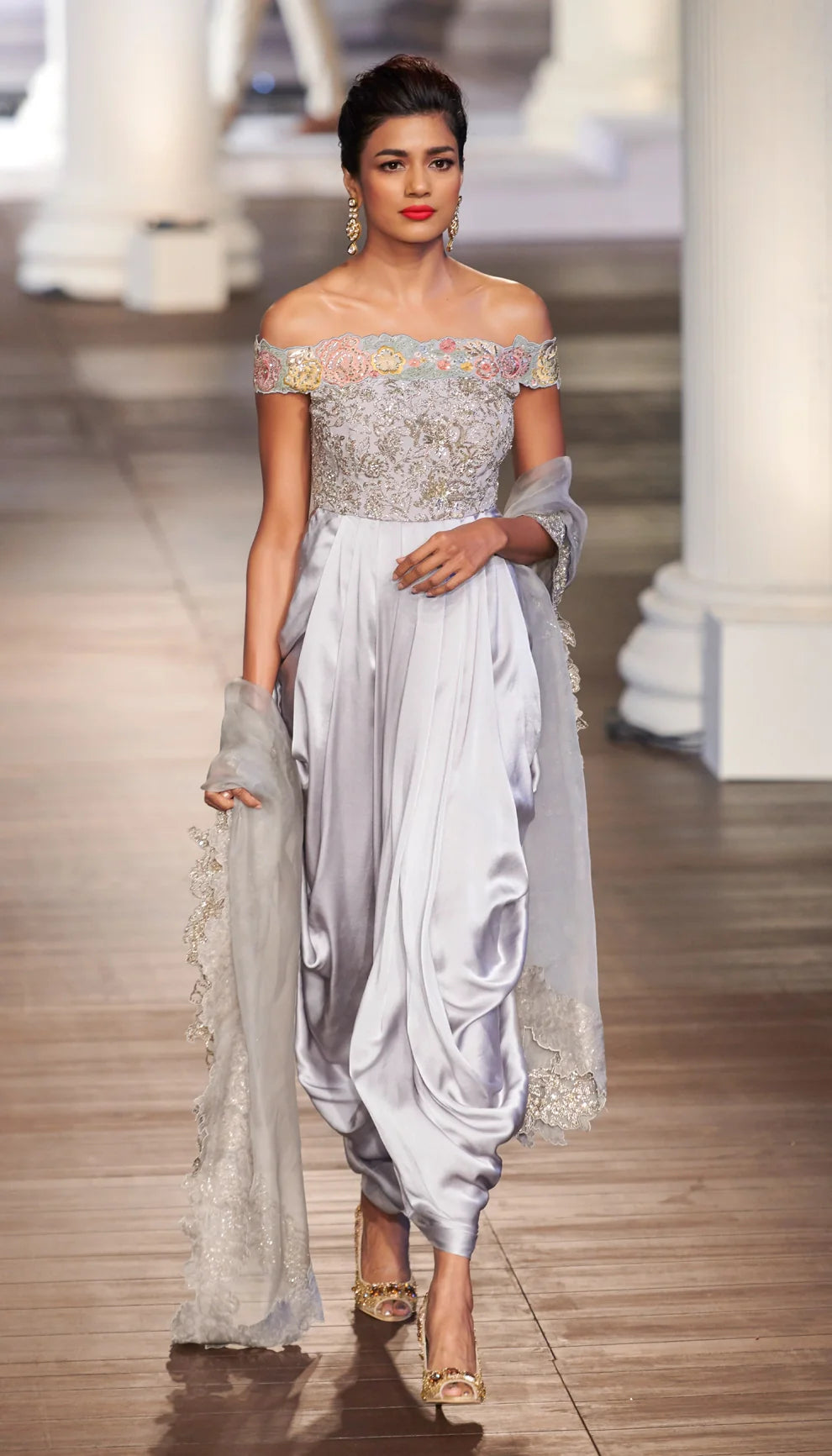 Moon Grey Satin Silk Evening Dress
