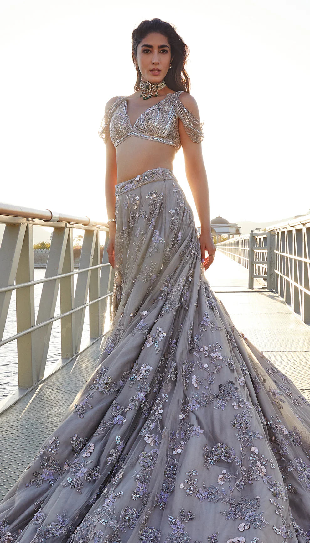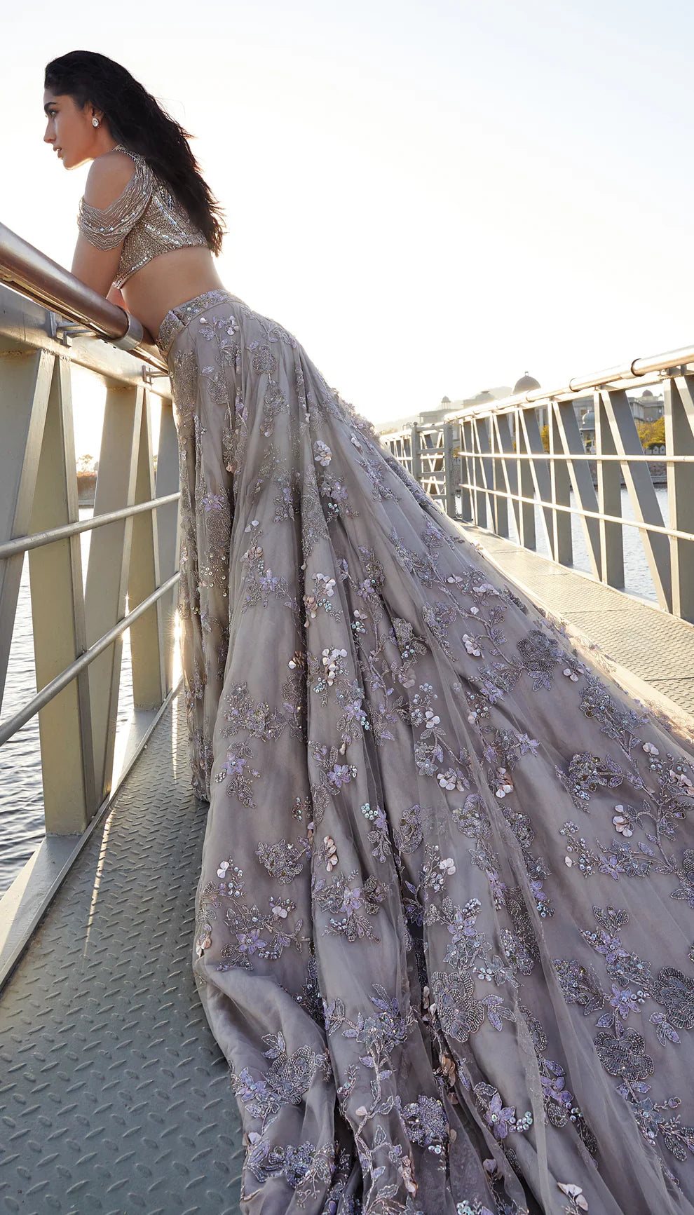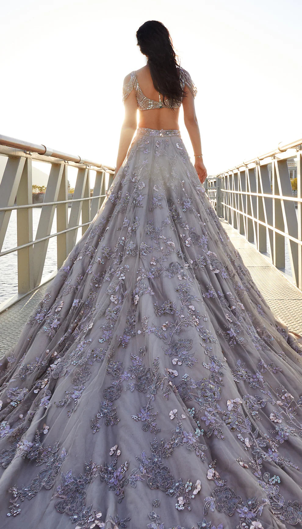 Moon Grey Tulle Trail Lehenga