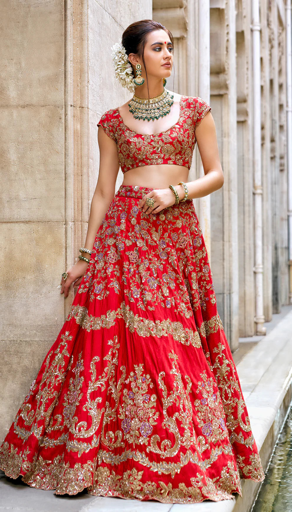 Phool Kinaar Lehenga: Peeta Embroidered Cutwork with Baroque Motifs & Floral Hem