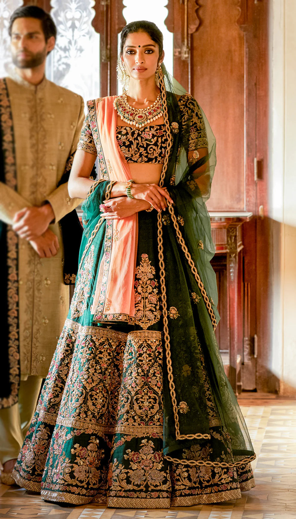 Saat Kamaan-Inspired Lehenga with Stained Glass Effect in Aari & Zardosi